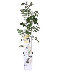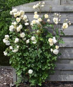 ‘Rosa Crazy in love Vanilla’ is een populaire crèmewitte klimroos met frisgroene glimmende bladeren. Rozen behoren al honderden jaren tot een van de bekendste en meest aangeplante groep planten. De roos heeft in verschillende culturen een symbolische waarde. Al in de oudheid werden er tempels en paleizen mee versierd. De roos begint te bloeien in juni en bloeit door tot aan de eerste vorst in oktober of november. Om het bloeien te stimuleren is het raadzaam om oude en uitgebloeide bloemen te verwijderen. De klimroos houdt van een zonnige standplaats, en voor de mooiste groei kun je hem het beste om het jaar tot zo’n 30 centimeter boven de grond terug snoeien.