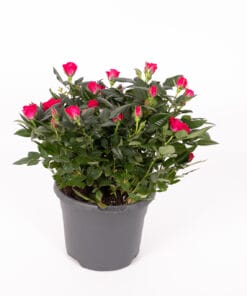 Rosa Jewel Patio Purple is een betoverende plant met opvallende paarse bloemen die een elegante en mystieke uitstraling toevoegt aan elke patio of buitenruimte.