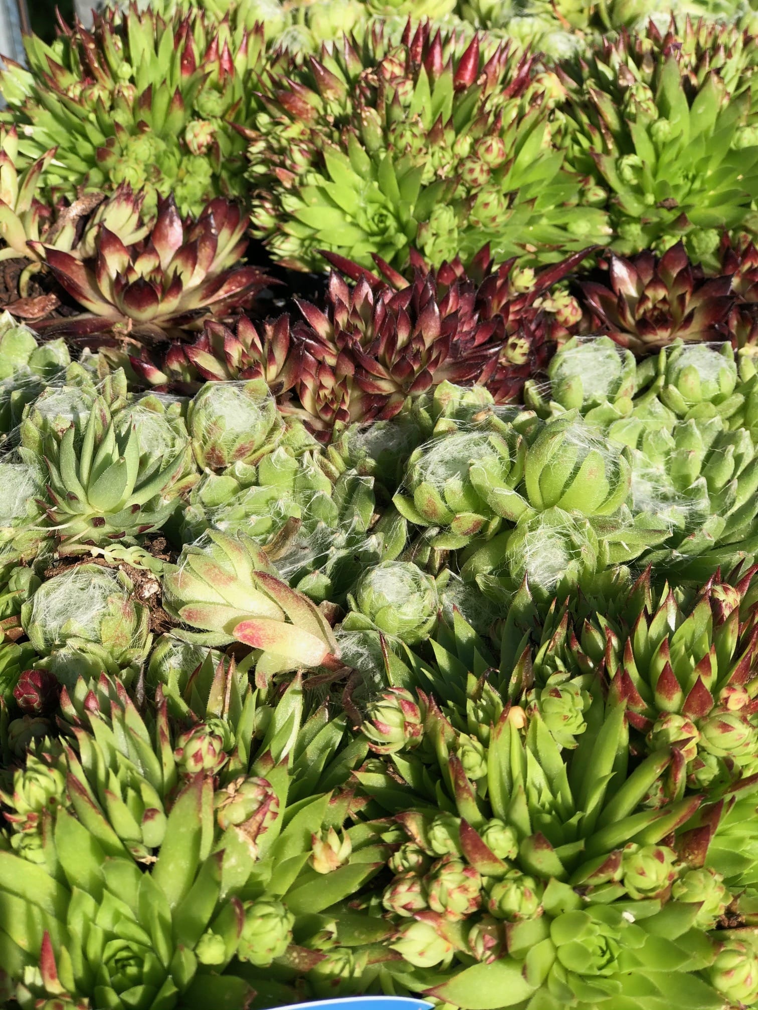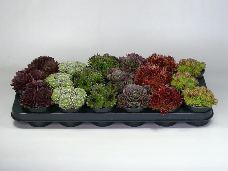 De Sempervivum is onderdeel van de vetplantenfamilie en slaat dus water op in het blad. Hierdoor groeit de Sempervivum heel goed als bodembedekker, op rotsen en droge grond en heeft hij weinig onderhoud nodig. In Nederland is de Sempervivum ook bekend onder de naam huislook. Wij adviseren 12 plantjes per vierkante meter om dicht te groeien tot een mooi dicht tapijt.