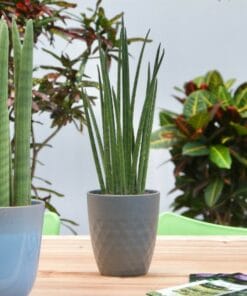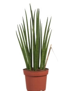 De Sansevieria is een heel bekende kamerplant en wordt ook wel “vrouwentong” genoemd. Oorspronkelijk komen deze planten uit Afrika, Madagaskar en zuid Azië. Ze staan er bekend om dat ze extreem makkelijk te verzorgen zijn: ze hebben nauwelijks water nodig en ook de standplaats zijn ze niet al te kieskeurig in. Daarnaast zuiveren ze ook nog eens de lucht! De Mikado bestaat uit lichtgroene, kaarsrechte cylindrische bladeren, die wat weg hebben van mikadostokjes. Deze Sansevieria is ook een van de planten die de lucht in huis kan zuiveren! Dat betekent dat hij niet alleen CO2 omzet in zuurstof, maar dat hij ook allerlei schadelijke stoffen uit de lucht haalt. In tegenstelling tot de meeste planten, doet de Sansevieria dit voornamelijk ’s nachts. Perfect voor slaapkamers in woningen in de stad en voor huizen met weinig ventilatie!