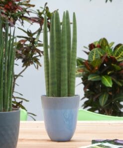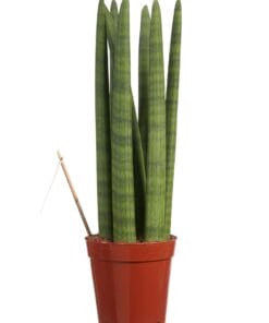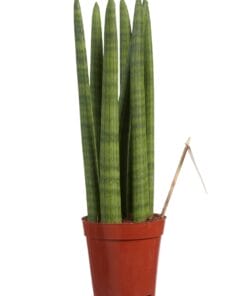 De Sansevieria is een heel bekende kamerplant en wordt ook wel “vrouwentong” genoemd. Oorspronkelijk komen deze planten uit Afrika, Madagaskar en zuid Azië. Ze staan er bekend om dat ze extreem makkelijk te verzorgen zijn: ze hebben nauwelijks water nodig en ook de standplaats zijn ze niet al te kieskeurig in. Daarnaast zuiveren ze ook nog eens de lucht! De Straight bestaat uit dikke, rechtopstaande cilindrische bladeren. Deze Sansevieria is ook een van de planten die de lucht in huis kan zuiveren! Dat betekent dat hij niet alleen CO2 omzet in zuurstof, maar dat hij ook allerlei schadelijke stoffen uit de lucht haalt. In tegenstelling tot de meeste planten, doet de Sansevieria dit voornamelijk ’s nachts. Perfect voor slaapkamers in woningen in de stad en voor huizen met weinig ventilatie!