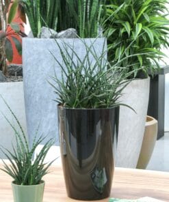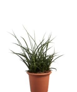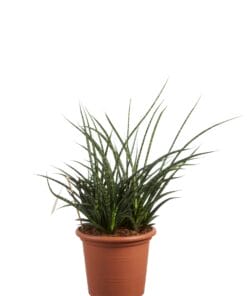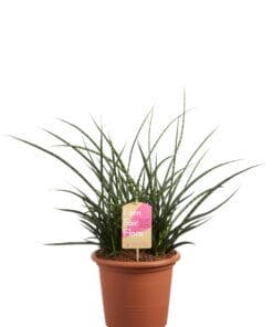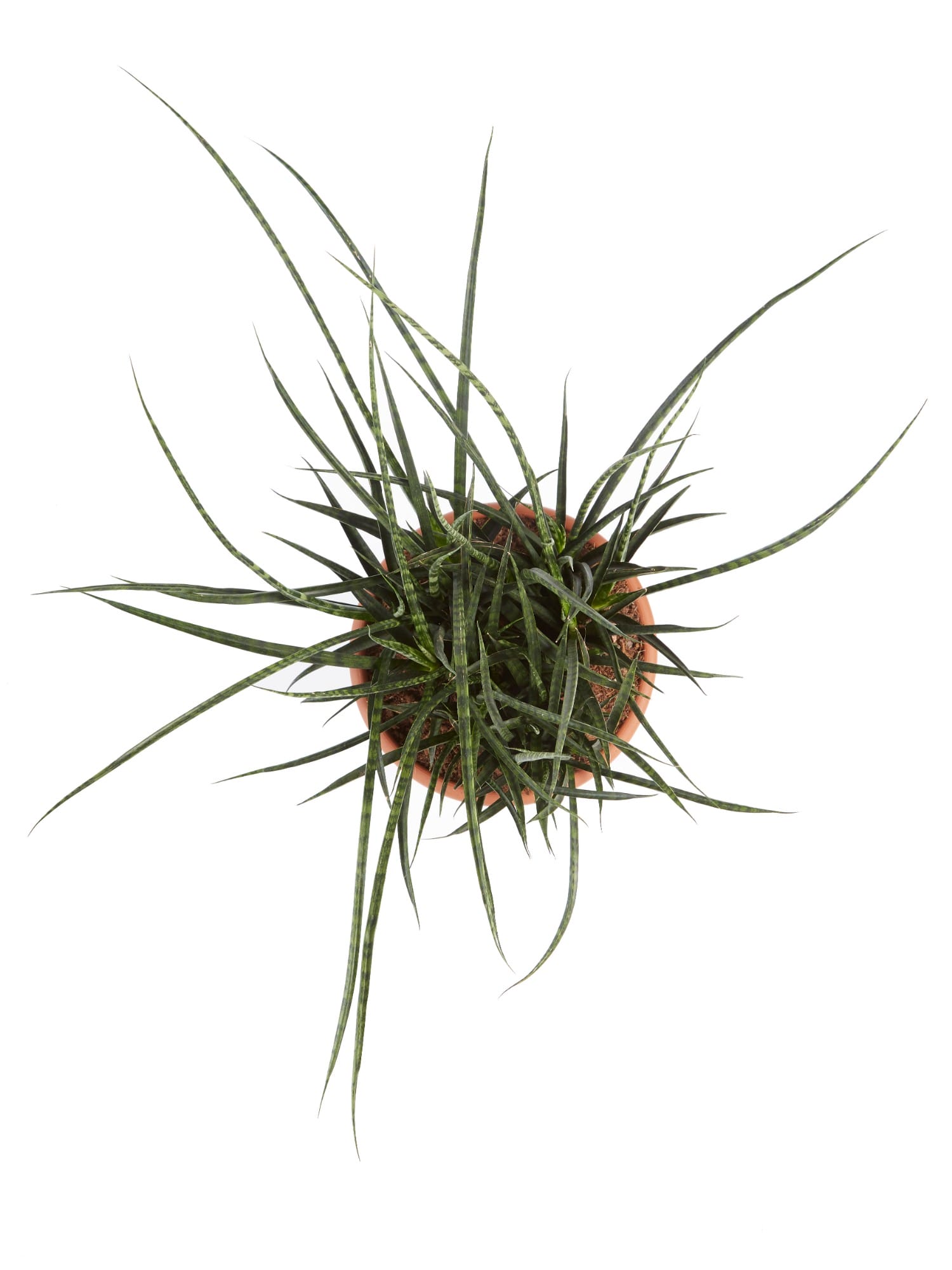 “De Sansevieria is een heel bekende kamerplant en wordt ook wel “vrouwentong” genoemd. Oorspronkelijk komen deze planten uit Afrika, Madagaskar en zuid Azië. De Fernwood Punk bestaat uit donkergroene, cilindrische bladeren die als het haar van een punkrocker alle kanten op staan. Een Sansevieria is extreem makkelijk te verzorgen, doordat hij best wel even zonder water kan en niet heel veel eisen stelt aan zijn standplaats. Een perfecte plant dus voor iemand die vaak een periode weg is van huis, of voor de student die wel wat groen wil, maar niet zoveel bezig wil zijn met de verzorging ervan. Deze Sansevieria is ook een van de planten die de lucht in huis kan zuiveren! Dat betekent dat hij niet alleen CO2 omzet in zuurstof, maar dat hij ook allerlei schadelijke stoffen uit de lucht haalt. In tegenstelling tot de meeste planten, doet de Sansevieria dit voornamelijk ’s nachts. Perfect voor slaapkamers in woningen in de stad en voor huizen met weinig ventilatie!