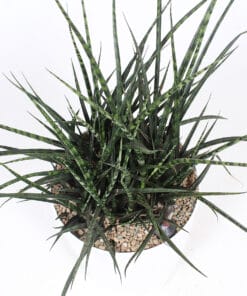 Dit is de ‘ongekamde’ variant van de Sanseveria Fernwood: daarom heet-ie Punk. Lekker ruig, niet te tuttig en uitgesproken opvallend. Het is hoe dan ook een aandachttrekker. In bloei is hij nog opvallender.