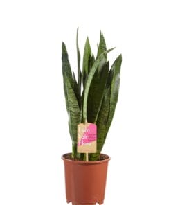 “De Sansevieria is een heel bekende kamerplant en wordt ook wel “vrouwentong” genoemd. Oorspronkelijk komen deze planten uit Afrika, Madagaskar en zuid Azië. De Zeylanica en Laurentii zijn echte klassieke Sansevieria’s, met grote platte bladeren, de Laurentii mét, en de Zeylanica zonder gele rand. Een Sansevieria is extreem makkelijk te verzorgen, doordat hij best wel even zonder water kan en niet heel veel eisen stelt aan zijn standplaats. Een perfecte plant dus voor iemand die vaak een periode weg is van huis, of voor de student die wel wat groen wil, maar niet zoveel bezig wil zijn met de verzorging ervan. Deze Sansevieria is ook een van de planten die de lucht in huis kan zuiveren! Dat betekent dat hij niet alleen CO2 omzet in zuurstof, maar dat hij ook allerlei schadelijke stoffen uit de lucht haalt. In tegenstelling tot de meeste planten, doet de Sansevieria dit voornamelijk ’s nachts. Perfect voor slaapkamers in woningen in de stad en voor huizen met weinig ventilatie!