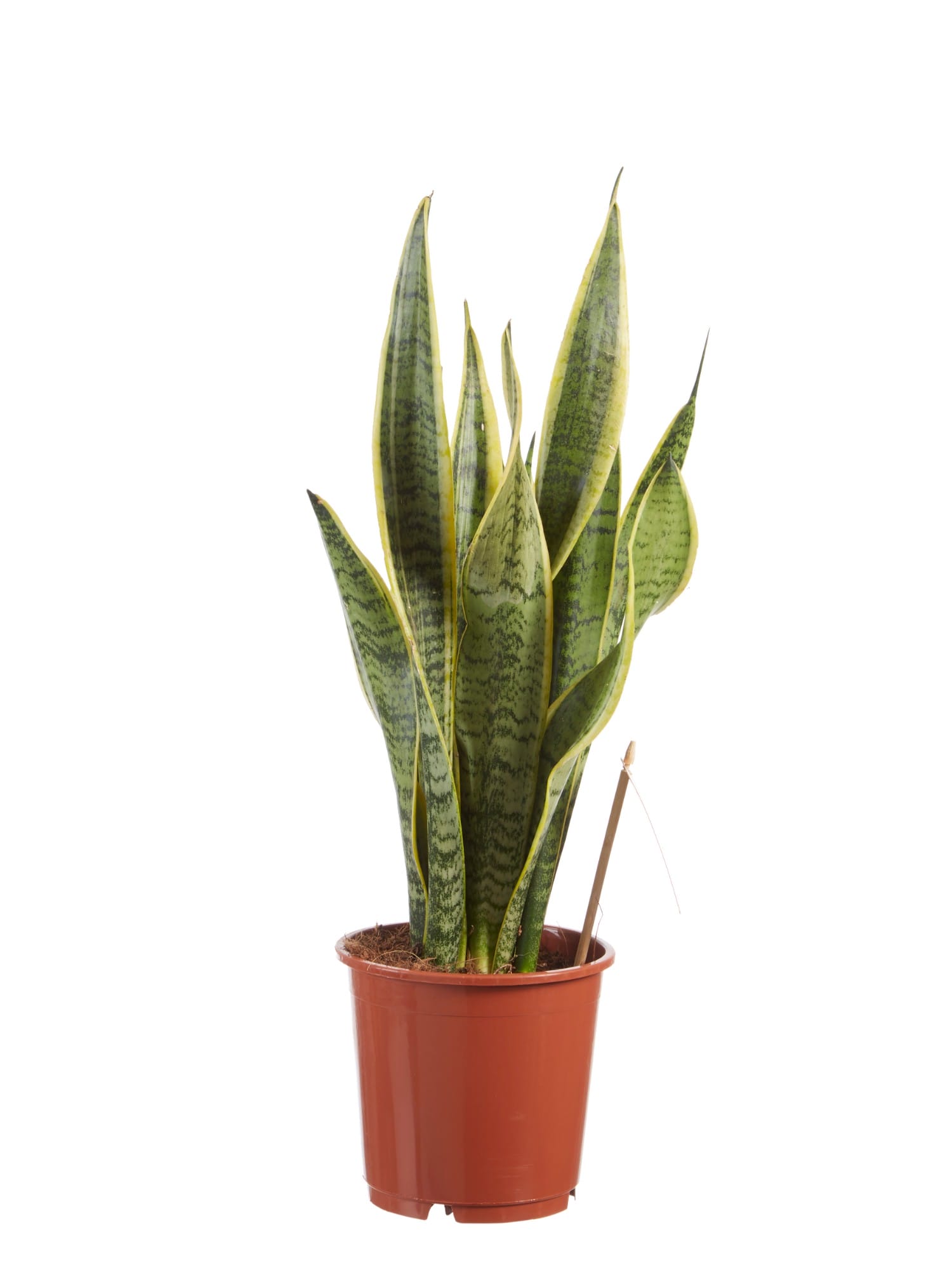 “De Sansevieria is een heel bekende kamerplant en wordt ook wel “vrouwentong” genoemd. Oorspronkelijk komen deze planten uit Afrika, Madagaskar en zuid Azië. De Laurentii is een echte klassieke Sansevieria, met grote platte bladeren met een gele rand. Een Sansevieria is extreem makkelijk te verzorgen, doordat hij best wel even zonder water kan en niet heel veel eisen stelt aan zijn standplaats. Een perfecte plant dus voor iemand die vaak een periode weg is van huis, of voor de student die wel wat groen wil, maar niet zoveel bezig wil zijn met de verzorging ervan. Deze Sansevieria is ook een van de planten die de lucht in huis kan zuiveren! Dat betekent dat hij niet alleen CO2 omzet in zuurstof, maar dat hij ook allerlei schadelijke stoffen uit de lucht haalt. In tegenstelling tot de meeste planten, doet de Sansevieria dit voornamelijk ’s nachts. Perfect voor slaapkamers in woningen in de stad en voor huizen met weinig ventilatie!