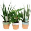 De Sansevieria of vrouwentong is een gemakkelijke plant. Deze set van drie Sansevieria in leuke sierpotten van keramiek heeft niet veel water nodig en stelt verder ook weinig eisen.
