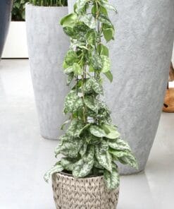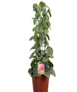 De Scindapsus Trebie is een groene klimplant afkomstig uit zuidoost Azië. Heel opvallend aan deze plant is de mooie hartvorm van het blad en het donkere groen met de zilverkleurige vlekken. Het is een vrij makkelijke plant om te verzorgen: zorg voor een geschikt plekje in huis en geef op tijd water. Deze plant klimt omhoog over een mosstok in een pot van 27cm diameter. Deze Scindapsus is een van de planten die de lucht in huis het beste kan zuiveren! Dat betekent dat hij niet alleen CO2 omzet in zuurstof, maar dat hij ook allerlei schadelijke stoffen uit de lucht haalt. Perfect voor woningen in de stad en voor huizen met weinig ventilatie!