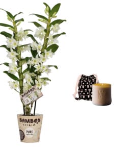 De Bamboo Orchid ‘Pure White Appolon’ heeft met haar witte bloemen een serene uitstraling. In combinatie met deze ‘ Lucky Candle Black’ wordt het een sieraad voor jouw interieur.