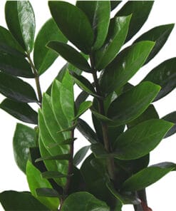 Zamioculcas is boven alles een sterk staaltje natuur. Deze groene persoonlijkheid heeft stevige, opvallend regelmatige leerachtige bladeren. Ze groeien zo aan de takken dat die een beetje op gestileerde veren lijken. Ondanks de stevige stengels valt Zamioculcas toch onder de kruidachtige planten. Zijn uithoudingsvermogen zit niet zozeer in hout en dikker of zwaarder worden, maar in zijn speciale vaten die vocht en voeding opslaan. Dat maakt het één van de makkelijkste woonplanten ooit. Licht, donker, water vergeten te geven – Zamioculcas blijft er stoïcijns onder en blijft intussen trouwhartig groen en mooi zonder zelfs maar te ruien. Als je echter meer wilt dan iets groens staat te wezen en verder vooral lijkt te dutten, doe je er goed aan toch een beetje in jullie relatie te investeren. Zamioculcas is geen vlotte groeier, maar dat maakt een nieuwe scheut een des te grotere overwinning.