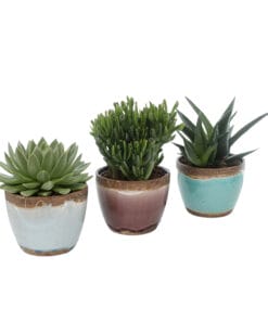 Een set van drie vetplanten in een Old Look keramieken pot. De vetplant is gemakkelijk in het onderhoud. Af en toe wat water en een lekkere lichte plek.
