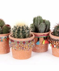 Deze mooie cactus mix bevat 4 decoratieve planten. De cactussen zijn eenvoudig in onderhoud. Deze set wordt geleverd in fraaie sierpotten van keramiek. Met deze mix van cactussen is jouw interieur in één keer hip en trendy. Ook leuk om cadeau te geven.