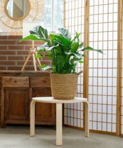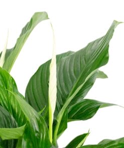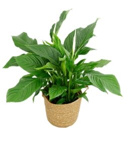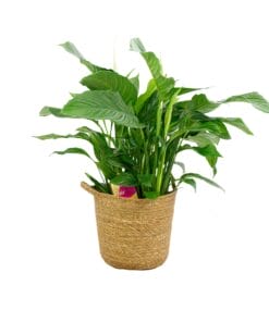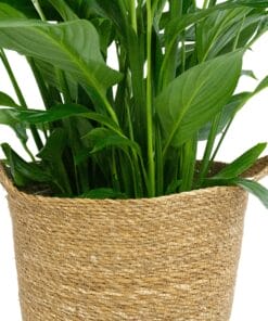 De Spathiphyllum, ook wel Lepelplant genoemd, is ideaal voor mensen die een sierlijke luchtzuiverende plant in huis willen hebben. De plant is een liefhebber van vocht, maar heeft geen grote hoeveelheden water of licht nodig, omdat het uit de dichte regenwouden komt. In combinatie met de stijlvolle mand is deze rijk bloeiende tropische plant perfect voor een botanisch interieur.