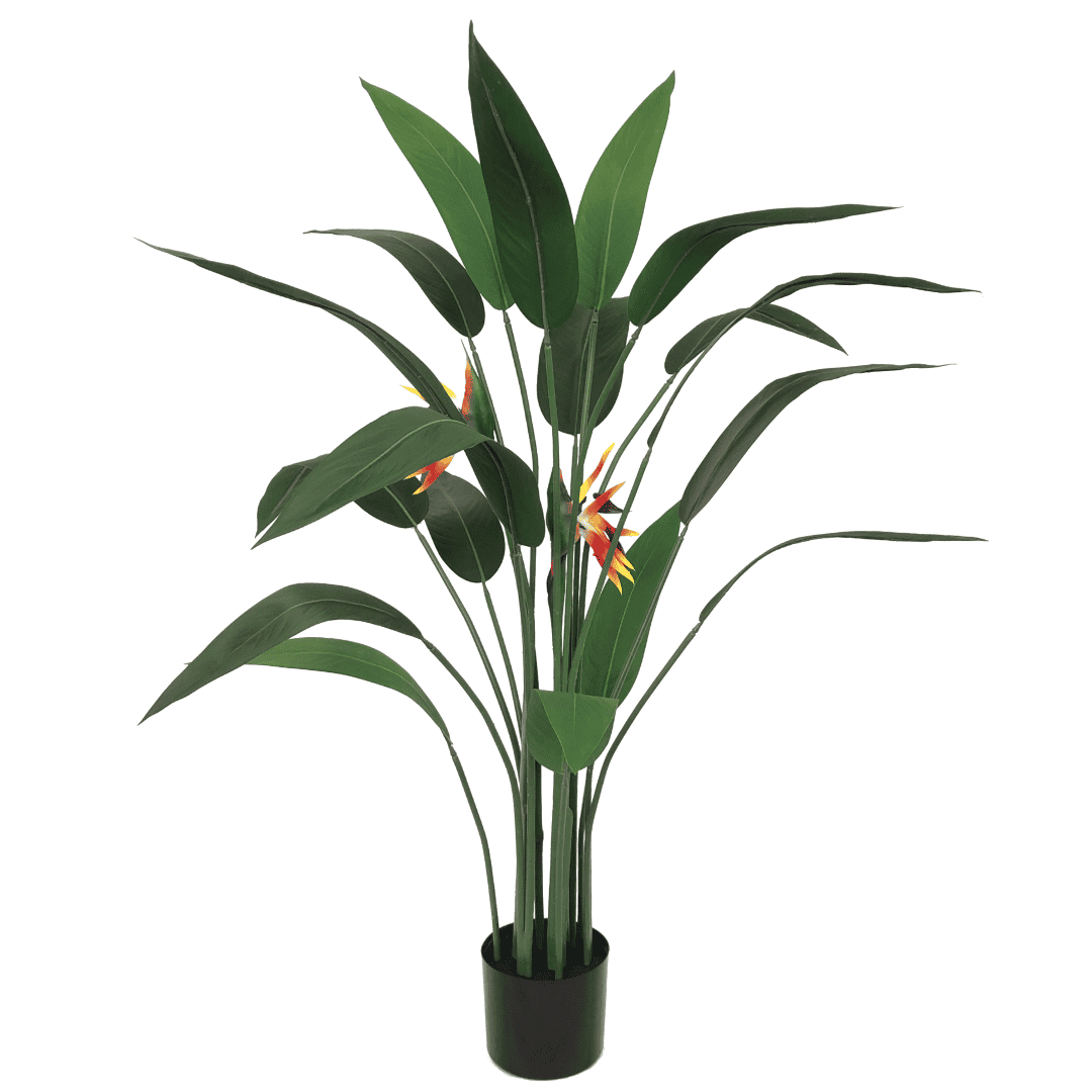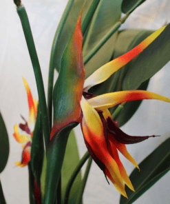 Deze Strelitzia is een echte tropische verassing! De Strelitzia wordt ook wel paradijsvogel plant genoemd en als je naar zijn bloemen kijkt snap je vast wel waarom. Normaal is deze plant gek op genoeg zonnestralen, maar daar heb je met deze kunst topper geen last van.