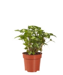 Syngonium is een klimplant die oorspronkelijk voorkomt in tropische regenwouden. De Pixie is een minivariant, waarvan de blaadjes veel kleiner zijn dan bij de meeste soortgenoten. De Pixie komt voornamelijk uit Costa Rica. Een eigenschap van Syngoniums is dat de bladeren van vorm veranderen naar mate de plant ouder wordt. Ook zul je zien dat deze plant ranken en luchtwortels gaat maken, wanneer hij ouder wordt. Het is een makkelijke plant met mooie, pijlvormige bladeren met een interessante bladtekening.