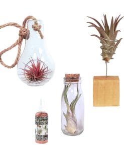 Tillandsia’s zijn erg leuk als decoratie. Dit unieke arrangement staat prachtig in ieder interieur. En natuurlijk is er een verzorgingsspray bijgesloten.