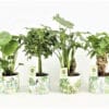 De Alocasia Cucullata wordt gekenmerkt door mooie pijlvormige groene bladeren en een opvallend compacte groei. De Schefflera die door zijn aparte bladeren Vingersboom genoemd wordt is een erg sterke plant en vraagt nauwelijks aandacht. De Monstera Deliciosa wordt dankzij de speciale vorm van de bladeren ook wel gatenplant genoemd. Deze hippe plant is een bron van inspiratie in de mode- en kunstwereld. De Radermachera Sinica komt oorspronkelijk uit China en Taiwan. De plant is erg decoratief vanwege de hoge luchtwortels.