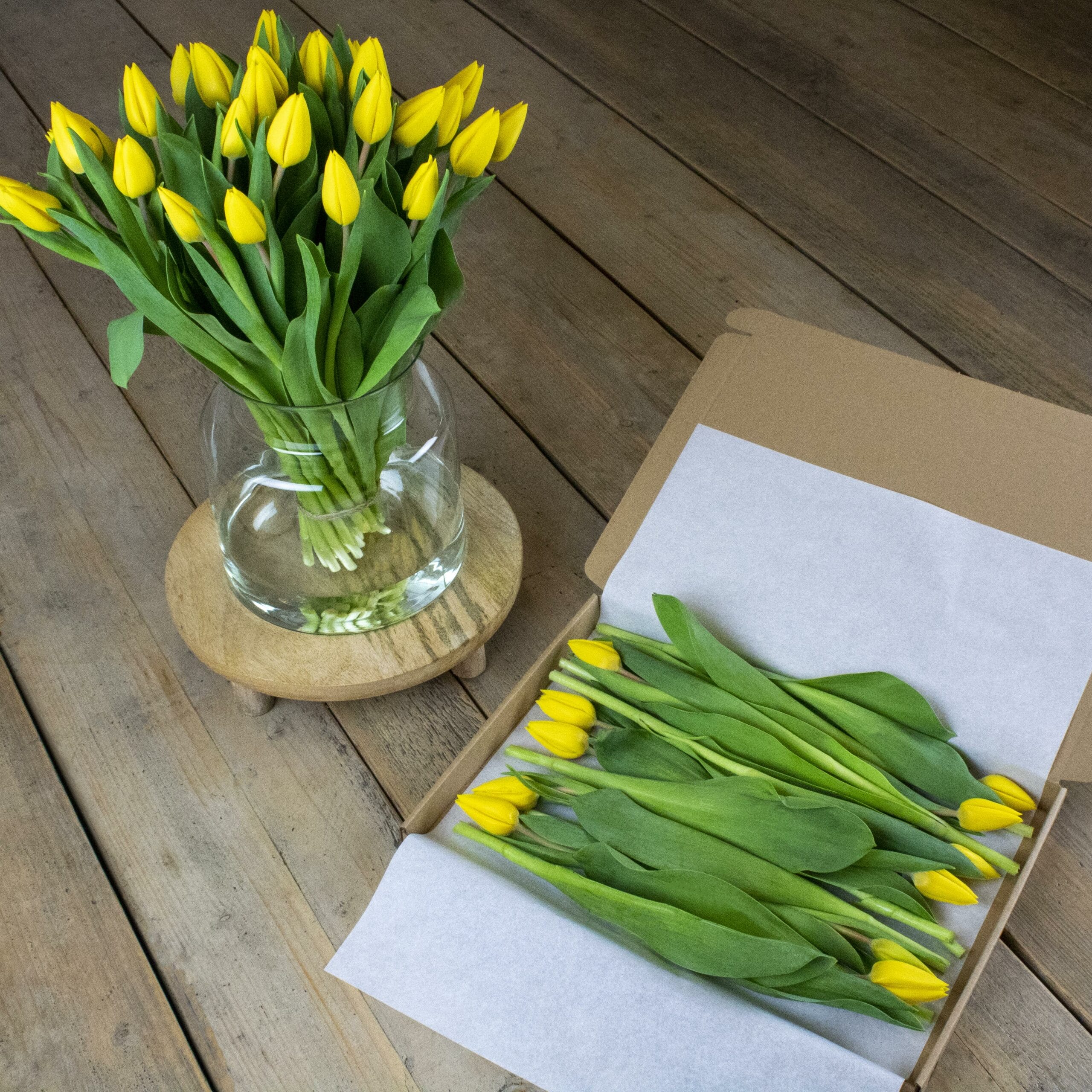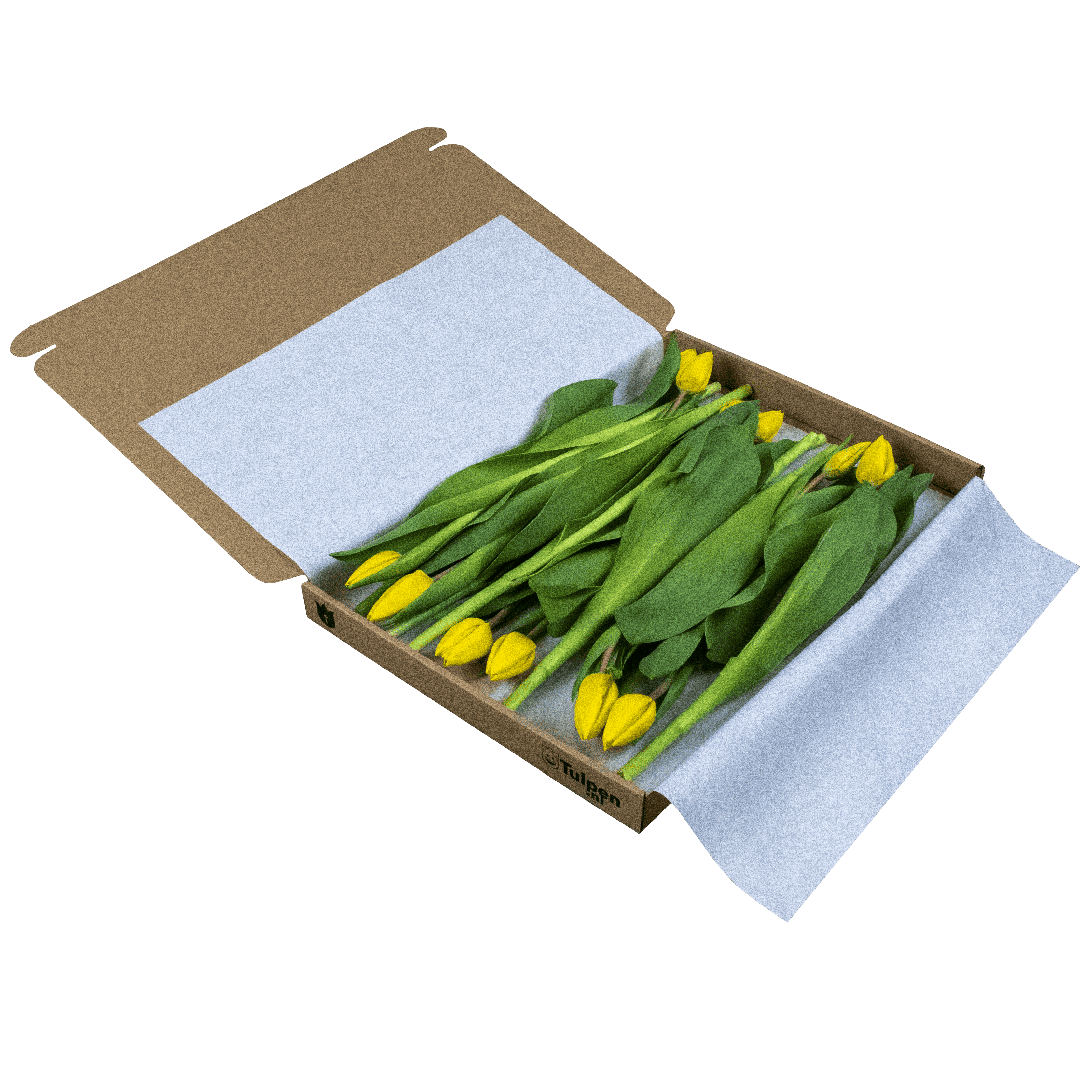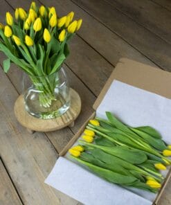 Het brievenbusdoosje bevat 10 gele tulpen.
