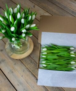 Trakteer jezelf op een prachtige bos witte brievenbustulpen, of verras iemand anders met dit bijzondere cadeau! Onze speciale verpakking is ontworpen om gemakkelijk door de brievenbus te passen, waardoor de levering zonder gedoe verloopt.