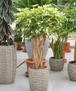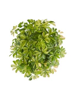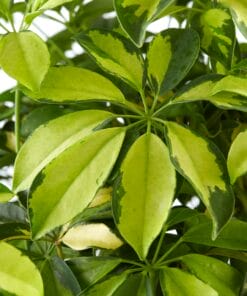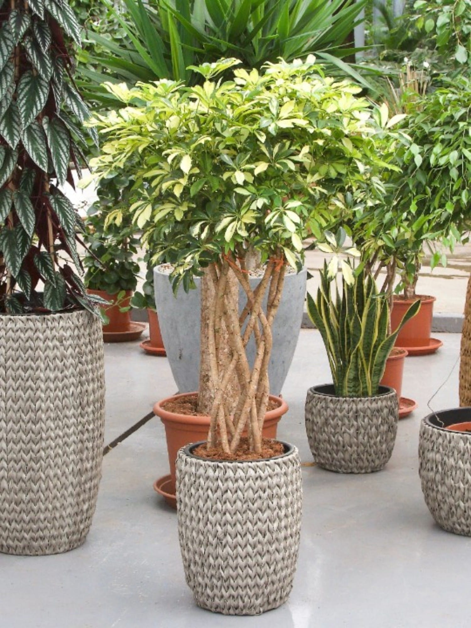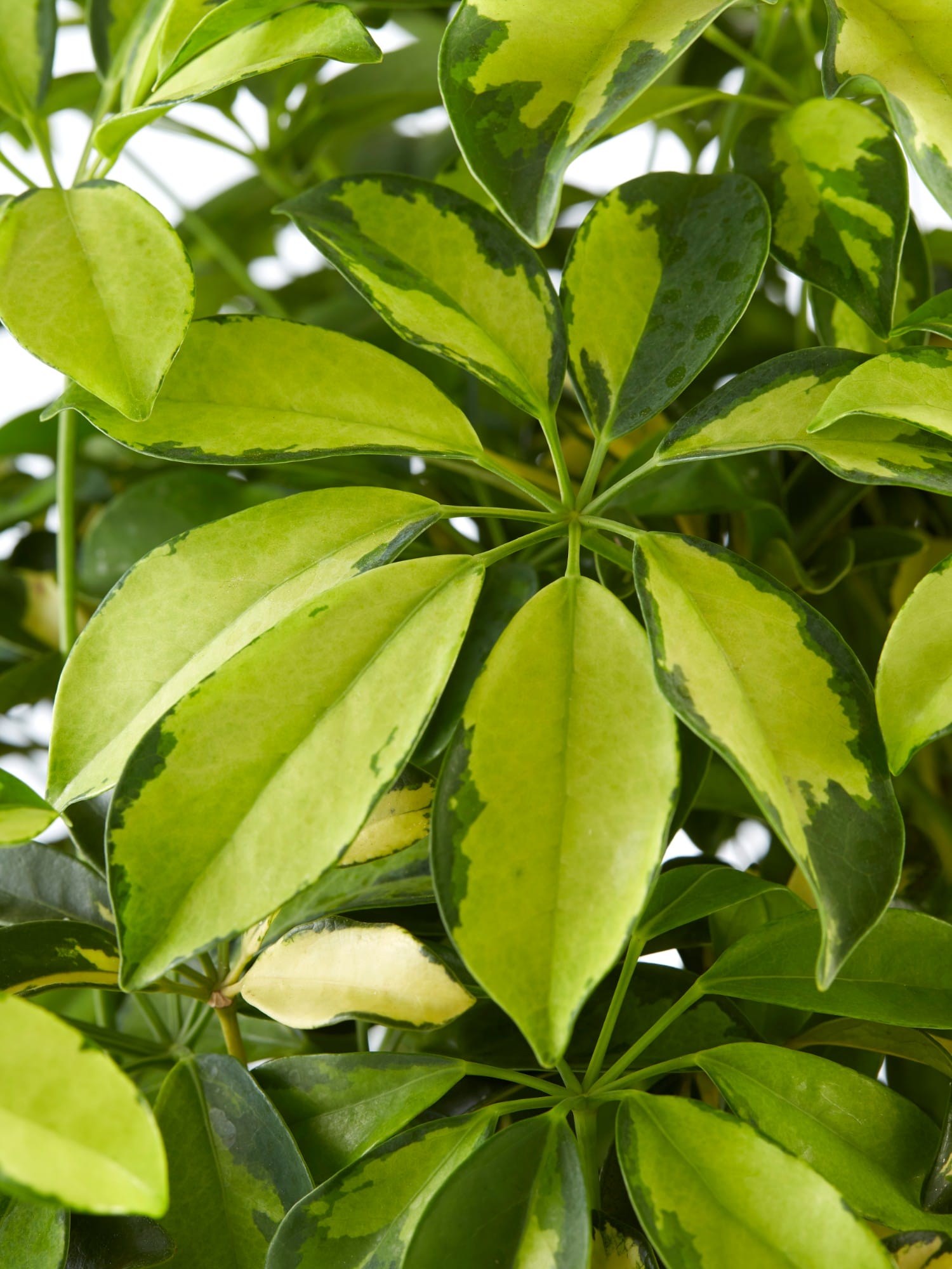 De Schefflera wordt ook wel vingersboom genoemd, door de karakteristieke vorm van de bladeren. De Trinette heeft mooie bonte bladeren en bij deze plant zijn de stammen tot een koker gevlochten. De plant ziet er wat meer uit als een boom, met duidelijk zichtbare stammen en een kruin. Het is geen heel moeilijke plant om te verzorgen: zorg voor een lichte plek en geef af en toe wat water. Deze plant groeit in een pot van 27cm diameter. Een Schefflera is makkelijk te verzorgen, doordat hij niet continu in vochtige aarde hoeft te staan. Daarnaast kan de Schefflera ook veel licht verdragen. Een makkelijke plant dus, geschikt voor die lastige zonnige plek!