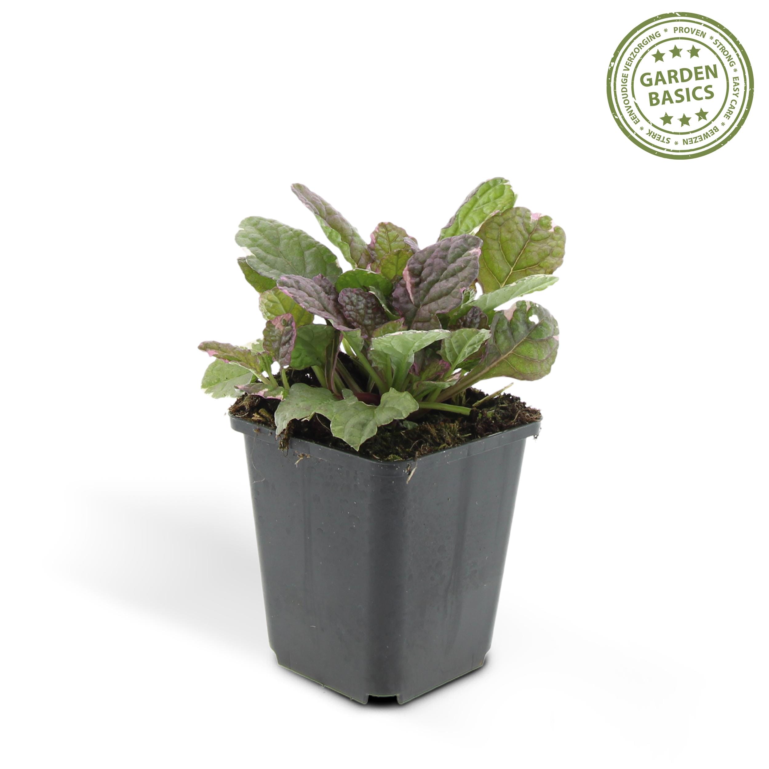 Ajuga Reptans is een mooie volle bodembedekker die plat groeit en zo de bodem geheel zal bedekken met bont leerachtigblad. Mei- Juni bloeit deze mooie bedekker blauw. Hij is zeer groeit het beste in de halfschaduw/schaduw maar groeit op bijna alle grondsoorten. Let op: planten zijn een levend product, waardoor deze kunnen afwijken van de foto en omschrijving. Ook kweken wij op een natuurlijke manier. Dat betekent dat wij, indien niet noodzakelijk, niet direct ingrijpen om insecten en bepaalde oneffenheden van de plant aan te pakken. Hierdoor kan het voorkomen dat de plant in een enkel geval optisch niet perfect is, maar bij u in de tuin alsnog herstelt. Wij beloven dat onze plant een krachtig product is, waarvan u langdurig gemak en plezier zult ervaren. Onze planten worden geleverd in een recyclebare plastic kweekpot welke, als u deze op de juiste wijze scheidt, terugkomt in de plastic kringloop. Alle planten worden direct verpakt en verzonden vanuit onze eigen kwekerij.