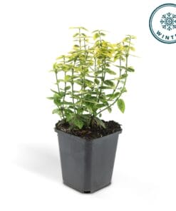 Euonymus fortunei ‘Emerald n Gaiety’ is zeer veelzijdig te gebruiken namelijk als plantvak , haag of solitair te gebruiken. Zijn blad kleurt zilverbont. Hij groeit op elke grondsoort en zowel in de zon als in schaduw. De plant zal groeien tot ca. 40-50cm hoog. Wilt u Euonymus snoeien dan graag voor eind maart van het nieuwejaar of rond de langste dag. Let op: planten zijn een levend product, waardoor deze kunnen afwijken van de foto en omschrijving. Ook kweken wij op een natuurlijke manier. Dat betekent dat wij, indien niet noodzakelijk, niet direct ingrijpen om insecten en bepaalde oneffenheden van de plant aan te pakken. Hierdoor kan het voorkomen dat de plant in een enkel geval optisch niet perfect is, maar bij u in de tuin alsnog herstelt. Wij beloven dat onze plant een krachtig product is, waarvan u langdurig gemak en plezier zult ervaren. Onze planten worden geleverd in een recyclebare plastic kweekpot welke, als u deze op de juiste wijze scheidt, terugkomt in de plastic kringloop. Alle planten worden direct verpakt en verzonden vanuit onze eigen kwekerij.