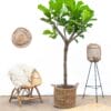 Ficus Lyrata (exclusief sierpot) , ook bekend als de vioolbladplant, voegt een vleugje weelderige pracht toe aan binnen- en buitenruimtes. Met zijn opvallende, grote bladeren die de vorm hebben van een viool, creëert de Ficus Lyrata direct een gevoel van weelderige allure en botanische elegantie. Deze plant gedijt goed in helder indirect licht en matig vochtige omstandigheden, waardoor hij ideaal is voor diverse interieur- en landschapsontwerpen. Naast zijn esthetische aantrekkingskracht fungeert de Ficus Lyrata ook als een luchtzuiveraar, waardoor de kwaliteit van de leefomgeving wordt verbeterd. Met zijn gemakkelijke verzorgingseisen is de Ficus Lyrata een favoriet onder liefhebbers van weelderige en onderhoudsvriendelijke planten.