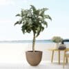 Kalanchoë Beharensis, ook bekend als Olifantsoor, is een opvallende succulente plant die een exotische uitstraling toevoegt aan binnen- en buitenruimtes. Met zijn kenmerkende, fluweelachtige, grijsgroene bladeren met een opvallende rand en textuur, creëert de Kalanchoë Beharensis direct een gevoel van weelderige allure en botanische elegantie. Deze plant gedijt goed in helder zonlicht en goed doorlatende, droge bodems, waardoor hij ideaal is voor diverse interieur- en landschapsontwerpen. Met zijn opvallende esthetiek en gemakkelijke verzorgingseisen is de Kalanchoë Beharensis een favoriet onder liefhebbers van sierlijke en onderhoudsvriendelijke planten.