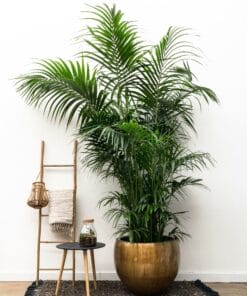 Kentia palm (exclusief sierpot) , ook bekend als Howea Forsteriana, is een elegante en statige palm die een vleugje tropische pracht toevoegt aan binnen- en buitenruimtes. Met zijn slanke, sierlijke stam en elegante, waaierachtige, diepgroene bladeren, creëert de Kentia palm direct een gevoel van rustieke allure en exotische schoonheid. Deze palm gedijt goed in helder indirect licht en matig vochtige omstandigheden, waardoor hij perfect is voor diverse interieur- en landschapsontwerpen. Naast zijn esthetische aantrekkingskracht fungeert de Kentia palm ook als een luchtzuiveraar, waardoor de kwaliteit van de leefomgeving wordt verbeterd. Met zijn gemakkelijke verzorgingseisen is de Kentia palm een favoriet onder liefhebbers van weelderige en onderhoudsvriendelijke planten.