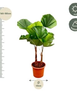 Wees de eerste om “Waaierpalm (Licuala Grandis) Dubbele Stam ↑ 170 cm ⌀ 45” te beoordelen Reactie annuleren