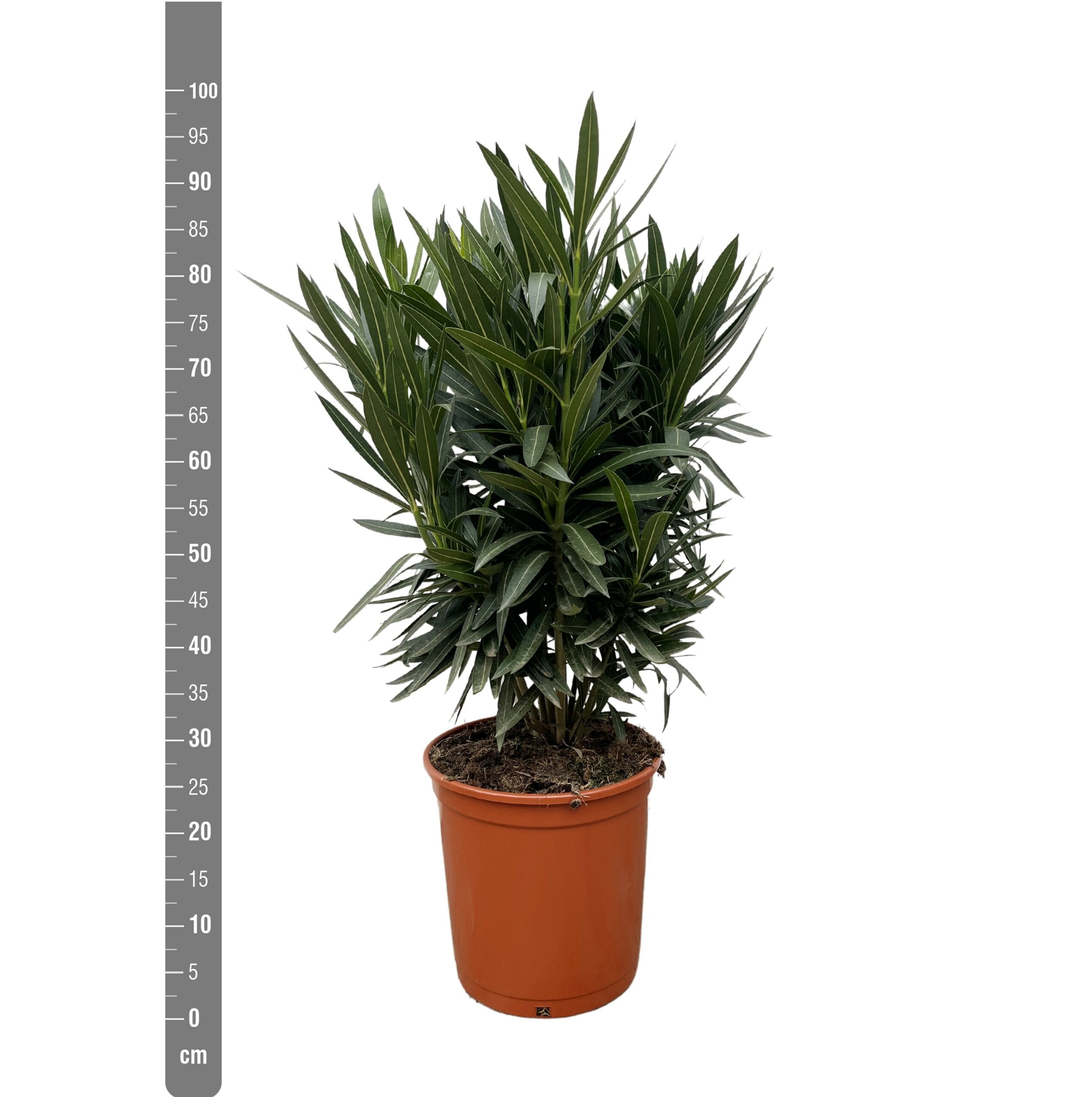 Nerium Oleander is een betoverende groenblijvende struik die een vleugje mediterrane pracht toevoegt aan tuinen en landschappen. Met zijn weelderige groei, glanzende, langwerpige bladeren en opvallende bloemen in verschillende tinten, zoals wit, roze, rood en geel, creëert deze struik direct een gevoel van exotische allure en elegantie. Nerium Oleander gedijt goed in zonnige en warme omstandigheden en voegt een vleugje mediterrane sfeer toe aan diverse buitenomgevingen. Met zijn vermogen om kleurrijke pracht toe te voegen, is deze struik de ideale keuze voor liefhebbers van weelderige en levendige landschappen die op zoek zijn naar een opvallende en onderhoudsvriendelijke toevoeging.