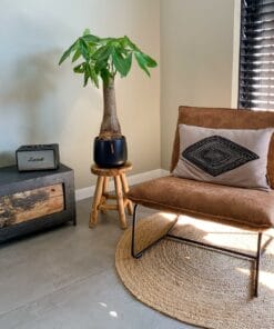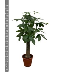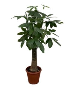 Pachira boom ‘Wout’, ook bekend als de geldboom of de watercacao, voegt een vleugje exotische pracht toe aan binnen- en buitenruimtes. Met zijn opvallende gevlochten stam en weelderige, handvormige bladeren, creëert de Pachira boom ‘Wout’ direct een gevoel van weelderige allure en botanische elegantie. Deze boom gedijt goed in zonnige en goed doorlatende bodems, waardoor hij ideaal is voor diverse tuinen en landschapsontwerpen. Naast zijn esthetische aantrekkingskracht wordt de Pachira boom ‘Wout’ ook geassocieerd met geluk en voorspoed volgens de Feng Shui-traditie. Met zijn opvallende verschijning en symbolische betekenis is de Pachira boom ‘Wout’ een favoriet onder liefhebbers van weelderige en betekenisvolle planten.