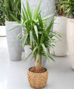 De Yucca staat in Nederland ook wel bekend als de Palmlelie. Waarom? Goede vraag, de Yucca is namelijk niet eens familie van de ‘echte palmen’. Wel is hij familie van andere zogenaamde ‘succulenten’, zoals de Dracaena, Beaucarnea en Cordyline. Deze stoere