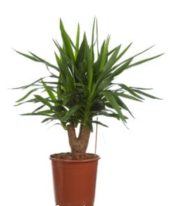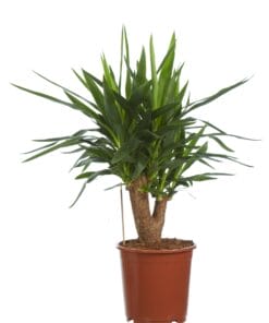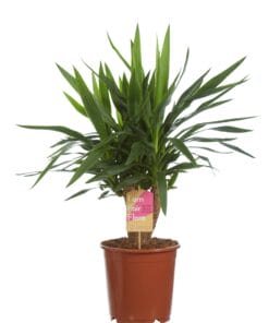 De Yucca staat in Nederland ook wel bekend als de Palmlelie. Waarom? Goede vraag, de Yucca is namelijk niet eens familie van de ‘echte palmen’. Wel is hij familie van andere zogenaamde ‘succulenten’, zoals de Dracaena, Beaucarnea en Cordyline. Deze stoere kamerplant is gewend aan de droge woestenij van Mexico en Texas en heeft dus niet al te veel eisen als het op verzorging aankomt. Dit is een mooi vertakte plant in een pot van 24cm diameter. De Yucca is gewend aan extreme omstandigheden, wat betekent dat hij heel makkelijk te verzorgen is. Een lekker licht plekje en een heel klein beetje water is alles wat nodig is!